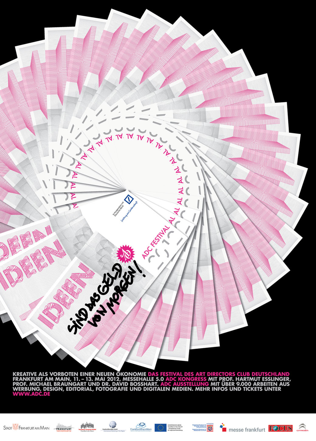 Ideas are the money of tomorrow It was a particular pleasure to use this campaign in the banking city of Frankfurt to draw attention to the fact that values can also be viewed differently today. We developed various motifs for the exhibition, congress & student competition around specially designed banknotes.