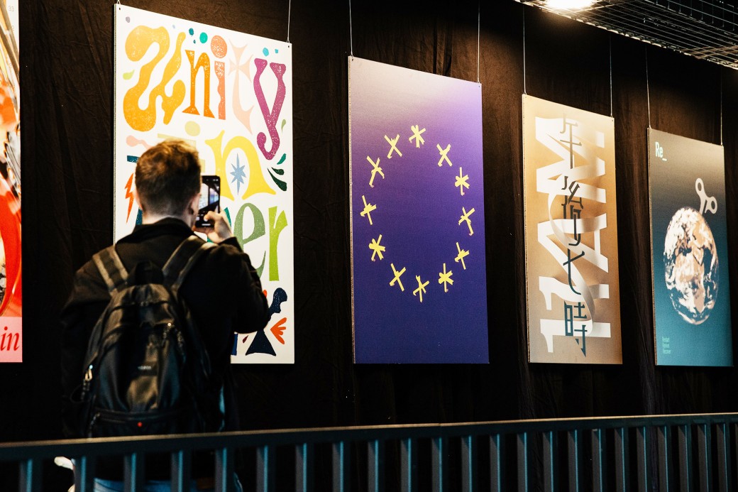 »WDCD X POSTERS CAN HELP« worked together on an exhibition for the 10th “What Design Can Do Live” in Amsterdam. The exhibition was on display in the main lobby area where participants got their coffee and tea during the breaks. The team of “WDCD” picked some of the posters that have been submitted so far to Posters Can Help to exhibit great works and raise awareness for this project. Hope, resilience, and people power take center stage at “What Design Can Do’s” tenth edition in Amsterdam. “What Design Can Do Live” marks a major milestone with a sold-out festival at the Internationaal Theater Amsterdam.
